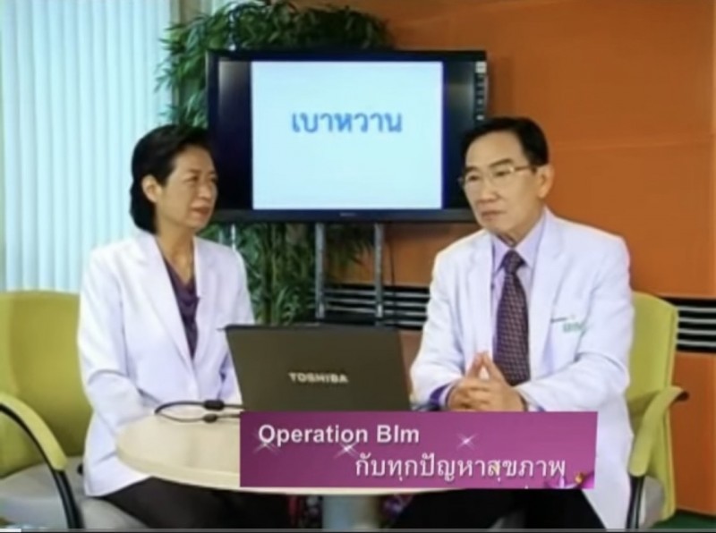 สรุปเนื้อหาคร่าว ๆ จากคลิปนี้  :  เริ่มจากมีตัวแมลงกัดเป็นแผลดำ และหายช้า ปกติตรวจร่างกายเป็นประจำเพราะมีพ่อเป็นเบาหวาน แม่เป็นมะะร็ง และแล้วก็ตรวจเจอจริงๆ ตรวจว่าเป็นเบาหวานครั้งแรกก็น้ำตาลขึ้น 300 เลย มีอาการชาข้างซ้ายทั้งหมด ชาตลอดเวลา เดินเต๊ะโต๊ะ เลือดไหล เล็บหลุด ก็ไม่รู้เรื่อง หมอจะให้ฉีดอินซูลิน แต่ขอต่อรองหมอว่าขอไปดูแลตัวเองก่อน ยังไม่อยากฉีดอินซูลิน เพราะทราบว่ามันมีผลข้างเคียงกับร่างกาย จนมีฝ้าขึ้นที่ตา ตามัว (เบาหวานขึ้นตา) จนมาพบกับงานวิจัย Operation Bim สีฟ้า ตอนนี้อาการทุกอย่างเป็นปกติ คุณภาพชีวิตดีขึ้นอย่างชัดเจน….( เชิญฟังรายละเอียดทั้งหมดจากคลิปข้างต้นค่ะ )