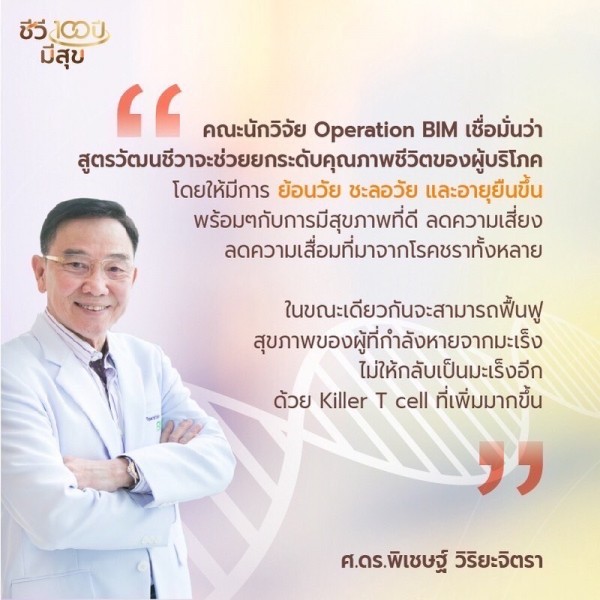 จากเหตุผลเหล่านี้ จึงทำให้นักวิจัยได้ทำการพิสูจน์ และทดลองต่อยอดจาก Bim100 ( นวัตกรรม “ภูมิคุ้มกันบำบัด” ) มาเป็น นวัตกรรม “วัฒนชีวา” สูตรใหม่ MyLife100 และ MyLife100A ( 2 สูตรนี้ แตกต่างกันที่ปัญหาสุขภาพของท่านที่ต้องการใช้นวัตกรรมนี้ โปรดสอบถาม..)