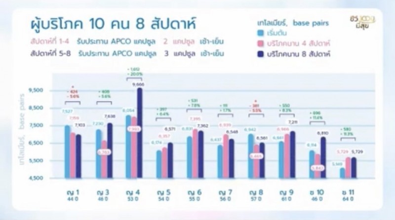 (เทเลเมียร์ เพิ่มขึ้นกว่าผลิตภัณฑ์ในตลาด 2-3 เท่า และแน่นอน ไม่มีความเสี่ยงต่อมะเร็ง เพราะสูตรนี้พัฒนามาจากสูตรภูมิคุ้มกันบำบัด ที่มีผลต่อการเพิ่มเม็ดเลือดขาว Killer T cell เพื่อการต้านมะเร็งนั่นเอง)