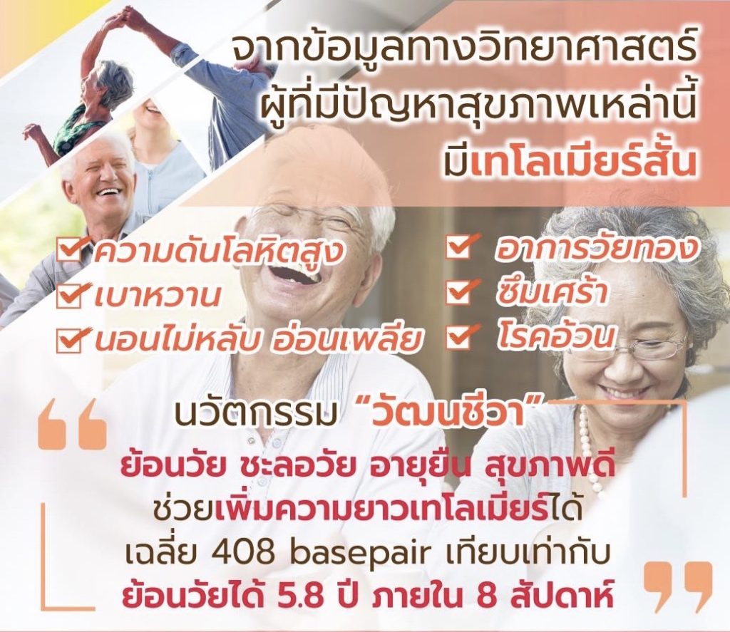 Tags: วัฒนชีวา, mylife100, มายไลฟ์100, เทโลเมียร์, ย้อนว้ย, เพิ่มความยาวเทโลเมียร์, ชีวี100ปีมีสุข, ชะลอวัย, telomere