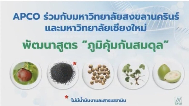 จึงเป็นที่มาของ สูตรเสริมสุขภาพ Bim100 ที่พัฒนาสูตร “ภูมิสมดุล” โดย APCO ร่วมกับมหาวิทยาลัยสงขลานครินทร์ และมหาวิทยาลัยเชียงใหม่ โดยมีส่วนผสมจากพืชกินได้ คือ มังคุด ถั่วเหลือง บัวบก งาดำ และฝรั่ง