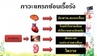 ภาวะแทรกซ้อนที่สำคัญ ของคนเป็นเบาหวาน 1. โรคหลอดเลือดแดงตีบแข็ง (Atherosclerosis) ทั้งหลอดเลือดหัวใจ และหลอดเลือดสมอง 2. โรคไต จากเบาหวาน 3. ระบบประสาทส่วนปลายเสื่อม มีอาการปวดเจ็บ